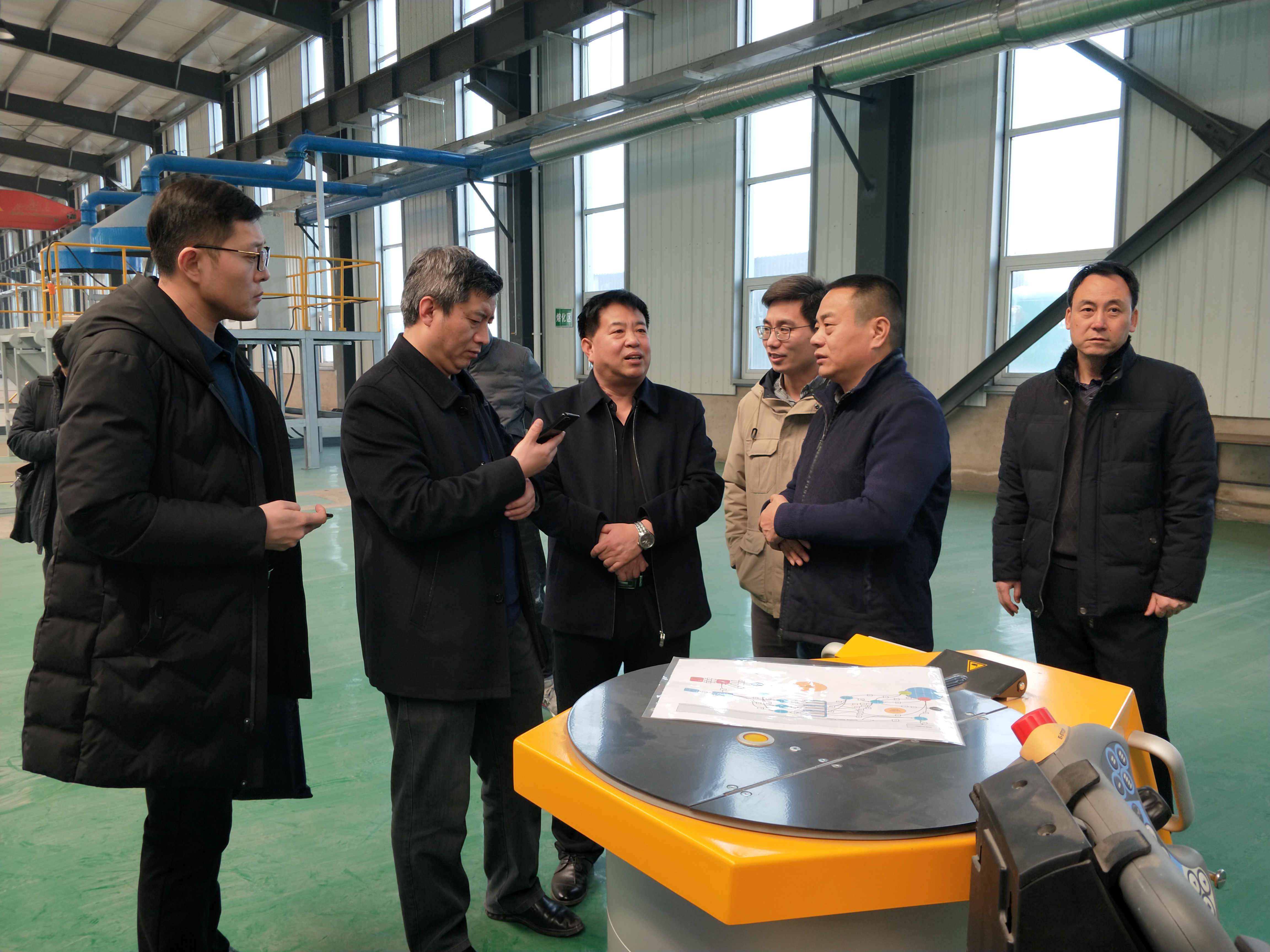 靳新遠(yuǎn)副局長(zhǎng)一行在生產(chǎn)現(xiàn)場(chǎng)調(diào)研,參加座談會(huì)。